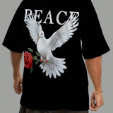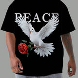 1 pieza camiseta grafica informal de talla grande para hombres con estampado de paloma y paz, apta para todas las estaciones