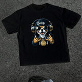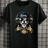 Camiseta de manga corta de cuello redondo con grafico de gesto de auriculares para hombres de talla grande, uso casual diario