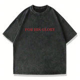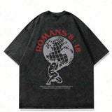 Camiseta de verano de cuello redondo con estampado de silueta de tierra y humano, lavada, de talla grande para hombre