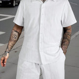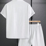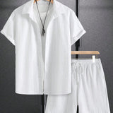 Conjunto de 2 piezas de camisa y pantalon corto para hombre de primavera/verano, que incluye camisa de cuello de beisbol de una sola de botones de manga corta y pantalon corto casual con cordon