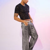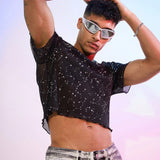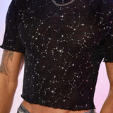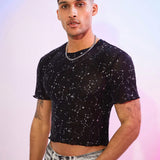 Camiseta de manga corta y cuello redondo de hilo de malla estilo coreano para hombre