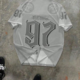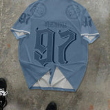 Emrg camiseta informal de manga corta con cuello en v y estampado numerico para hombre de talla grande