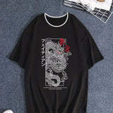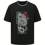 Camiseta de punto de cuello redondo informal con estampado de letras del dragon de tokio, talla grande, para hombres de verano