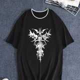 Camiseta de cuello redondo de manga corta casual con estampado geometrico para hombres talla grande, de verano