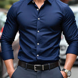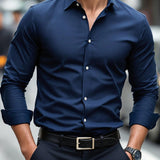 Camisa formal clasica azul marino para hombre, camisa con botones y mangas largas, ¡exito de en el extranjero! camisa ajustada azul marino, desbloquea el charm de un hombre elegante