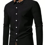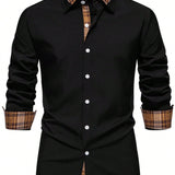 Camisa casual de manga larga para hombre, camisa formal de patchwork para hombre