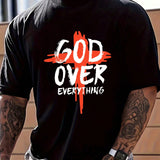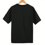 Camiseta de manga corta y cuello redondo con grafico de letra para hombres de talla grande, de estilo casual simple