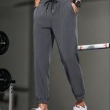 1 pieza pantalones deportivos de hombre con estilo novio, cintura con cordon y bolsillos laterales con solapa