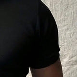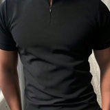 Camiseta informal de cuello redondo y media cremallera de manga corta para hombre, color negro solido, para uso en verano