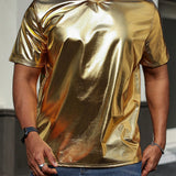Homme camiseta de moda de manga corta con cuello redondo, unicolor y textura metalica, para hombres de talla grande