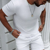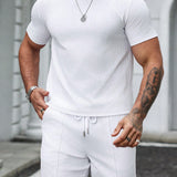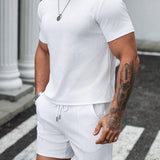 Manfinity casualcool conjunto de camiseta de manga corta de cuello redondo casual y pantalones cortos para hombres