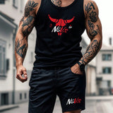 Conjunto de camiseta de tirantes y pantalones cortos estilo novio "manfinity sport corelite", conjunto de gimnasio con estampado de toro, conjunto deportivo con estampado grafico de letra estilo novio para hombre, conjunto deportivo atletico, conjunto