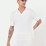 Sumwon conjunto de 2 piezas con top tipo polo de punto trenzado de manga corta con ajuste regular y pantalon corto