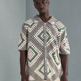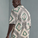 Sumwon camisa de manga corta de punto de ganchillo en bloques de colores de corte regular