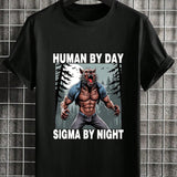 Camiseta de manga corta de cuello redondo de talla grande para hombre con estampado grafico de texto casual, para uso diario