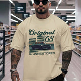 Camiseta de manga corta de cuello redondo con estampado de letras de coche, informal, para hombre de talla grande, de verano