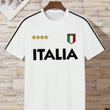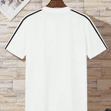 Camiseta de manga corta casual de hombre con estampado de letra, transpirable y de secado rapido