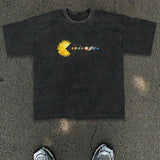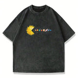 Camiseta de manga corta con cuello redondo, estampado de galaxia, lavada y de estilo oscuro y2k informal para hombre talla grande, atuendo de uso diario