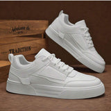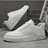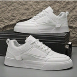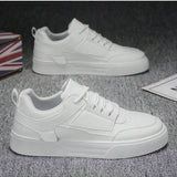 Zapatillas casuales blancas para hombre, con suela gruesa, versatiles, estudiantes, transpirables, atleticas, de cordones planos de corte bajo, adecuadas para todas las estaciones