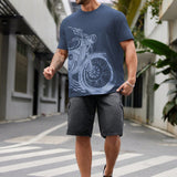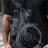 Legnd camiseta de manga corta de cuello redondo con estampado grafico de motocicleta de talla grande para hombre, casual