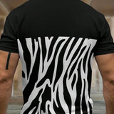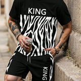 Conjunto de camiseta de manga corta y pantalon corto con estampado de letras y rayas de cebra para hombre