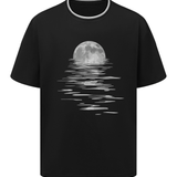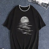 Camiseta de cuello redondo acanalada con estampado lunar, casual, para hombres de talla grande, para verano
