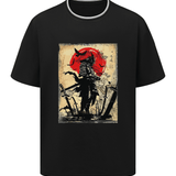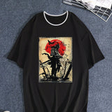Camiseta de cuello redondo acanalada con estampado de samurai, informal, tallas grandes para hombre, verano