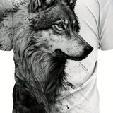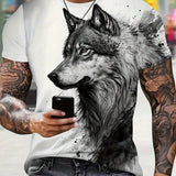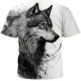 Camiseta de cuello redondo de manga corta con estampado digital de lobo genial de anime, para uso en verano y al aire libre, como regalo