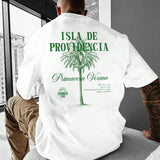 Camiseta de cuello redondo de manga corta casual con pantalones casuales con estampado de sombras de arbol para hombres, adecuado para viajes/vacaciones/camping al aire libre/deportes