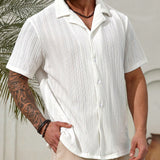 Manfinity rsrt camisa de hombre de talla grande de manga corta, de un solo pecho, con cuello desgastado y de unicolor