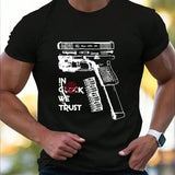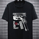 Camiseta casual de manga corta y cuello redondo con estampado de texto "gun" para hombres de talla grande, modelo de verano