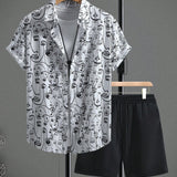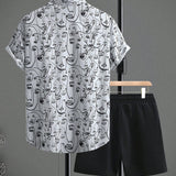 Conjunto de camisa de manga corta con estampado de figura a rayas en negro y blanco y pantalones cortos de color liso, para el verano