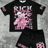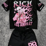 Manfinity emrg conjunto de camiseta y pantalones cortos sencillo y de moda para hombres, apropiado para el verano