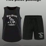 Manfinity sport corelite conjunto deportivo de chaleco y shorts con estampado de letras de esqueleto para hombre