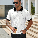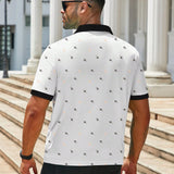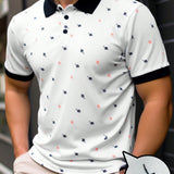 Homme camisa polo de manga corta con estampado de hojas y parches de colores contrastantes, talla grande para hombres