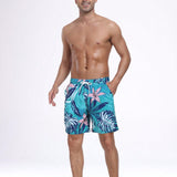 Nuevos shorts de playa de secado rapido para hombre en verano, shorts casuales de vacaciones con estampado, sueltos con cordon y forro interior de doble capa de seda de leche