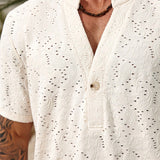 Manfinity rsrt camisa de manga corta de hombre con estampado jacquard calado, de corte cenido en la cintura, con estampado paisley y floral en color caqui, adecuado como regalo para esposo o novio