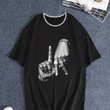 Camiseta de cuello de tripulacion acanalada con estampado a mano informal para hombres de talla grande de verano