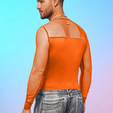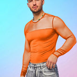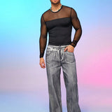 Camiseta de manga larga de cuello redondo ajustada para hombres con inserto de malla, estilo ciudad con fiebre