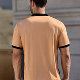 Relaxmax camiseta casual de hombre de manga corta, con media placa con botones y de rayas
