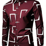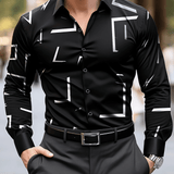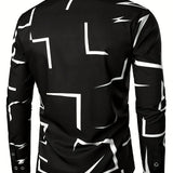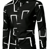Camisa formal de vestir de manga larga con cuello abotonado en color negro, adecuada para ocasiones de negocios, uso diario en la oficina, con diseno de patron geometrico apropiada para primavera, verano y otono, apta para eventos de negocios, casuales