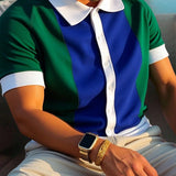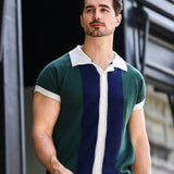 Manfinity homme cardigan casual de manga corta a rayas de una sola hilera para hombres