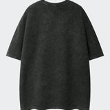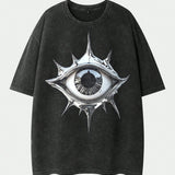 Camiseta informal para hombres con lavado vintage, estampado de ojos de metal punk en negro, moda minimalista para uso diario, adecuada para primavera/verano, estilo callejero