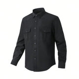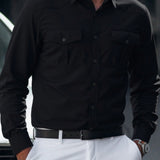 Camisa negra para hombre - camisa de trabajo transpirable de ajuste cenido, camisa casual de negocios con botones para la oficina diaria