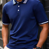 Homme camisa polo de manga corta informal con ribete de contraste para hombres de talla grande