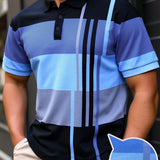 Homme camisa polo de manga corta a rayas informal para hombres de talla grande, adecuada para ir al trabajo