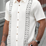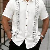 Manfinity casualcool camisa informal de manga corta y abotonadura sencilla con estampado grafico para hombres de talla grande