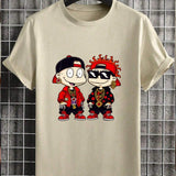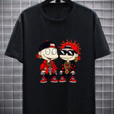 Camiseta casual de manga corta y cuello redondo con estampado de personaje de dibujos animados para hombres de talla grande, para verano