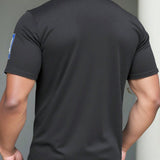 Homme camiseta de manga corta de cuello redondo casual con rayas y grafico de letras para hombres de talla grande, adecuada para uso diario