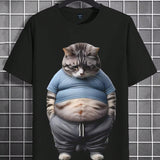 Manfinity dauomo camiseta de manga corta casual de verano para hombre con estampado de gato de dibujos animados